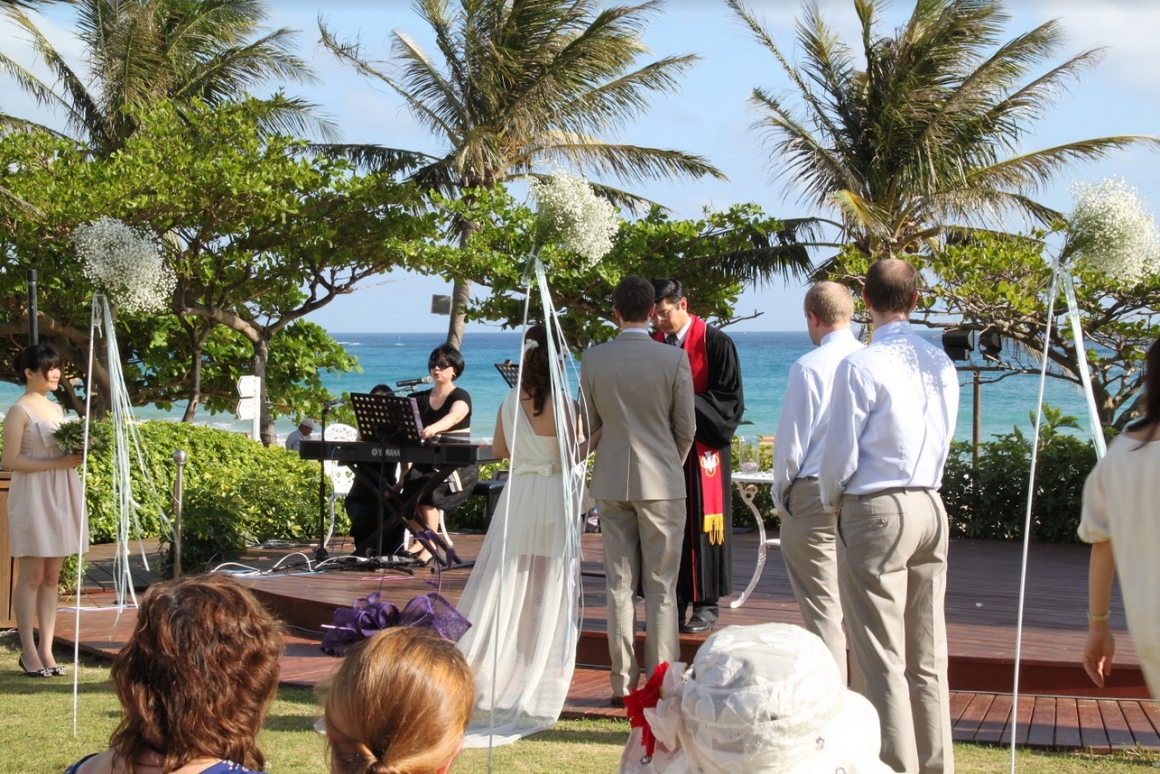 愉悅的氣氛是此生難忘的回憶。站在濱海露台,接受眾人的祝福。
